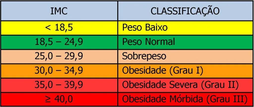 IMC < 18,5 – abaixo do peso